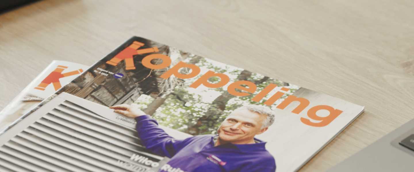 ‘Omdat ik van een uitgeverij kwam, had ik veel ervaring met het ontwikkelen van magazines. Dat kwam goed uit: hier leefde al een poosje het idee om er een uit te geven. Dat project kwam op mijn bordje te liggen, hartstikke leuk natuurlijk! We hebben het uitgewerkt van idee tot concept en lancering. Inmiddels is dit het vijfde jaar dat Koppeling verschijnt. Het is een vakblad voor de installateur, waarbij we als rode draad de energietransitie en duurzaamheid hebben. Het wordt verstuurd naar ruim 10.000 abonnees, dus het is goed zichtbaar. Uit de reacties merken we elke editie weer dat het ook goed gelezen wordt. Natuurlijk hebben we ons, in dit digitale tijdperk, ook wel afgevraagd of het niet moeten digitaliseren. Een uitgebreid lezersonderzoek wees uit dat onze abonnees Koppeling toch het liefst op papier lezen. Eind dit jaar volgt een volgend onderzoek om te checken of dit nog steeds de trend is. Gelukkig maar, want ik heb er nog steeds heel veel plezier in om telkens weer een nieuwe editie te ontwikkelen!’