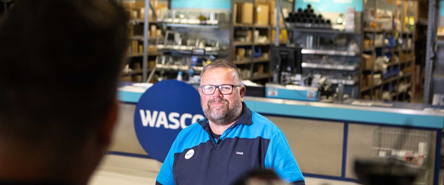 ‘Klanten goed helpen en ondertussen een geintje kunnen maken, daar hou ik van. Wij willen de klant zo snel mogelijk weer de deur uit hebben. Dat klinkt misschien gek, maar hun tijd is kostbaar. Een kwartier wachten aan de balie is te lang.’ Aan het woord is Luuk van het Loo, verkoopmedewerker bij Wasco Apeldoorn. ‘Klanten zijn mijn passie.’